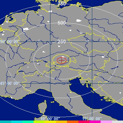 Blitz-Aktivität im Umkreis von ca. 600 Km (oder weniger).